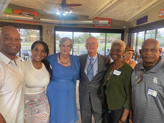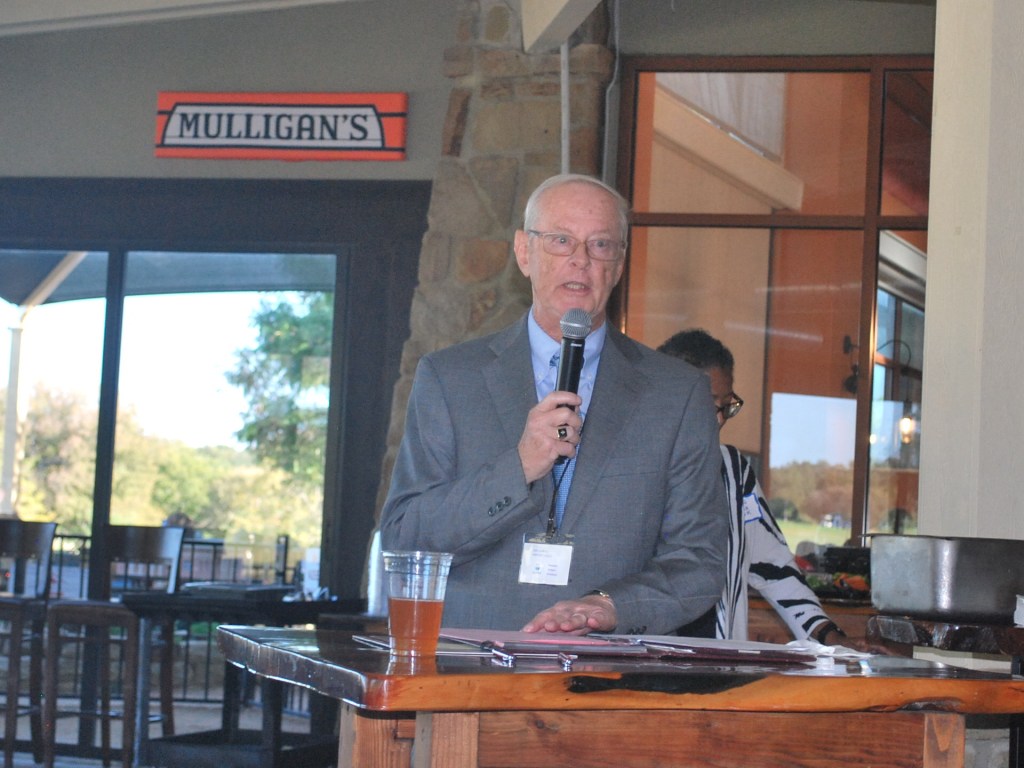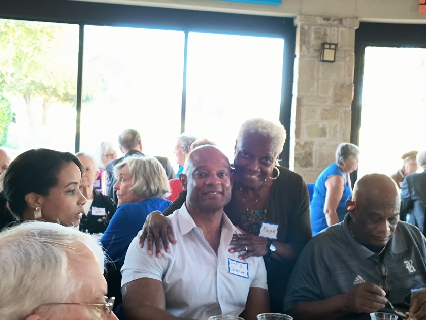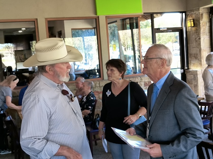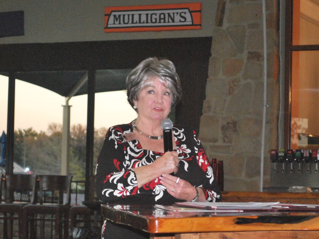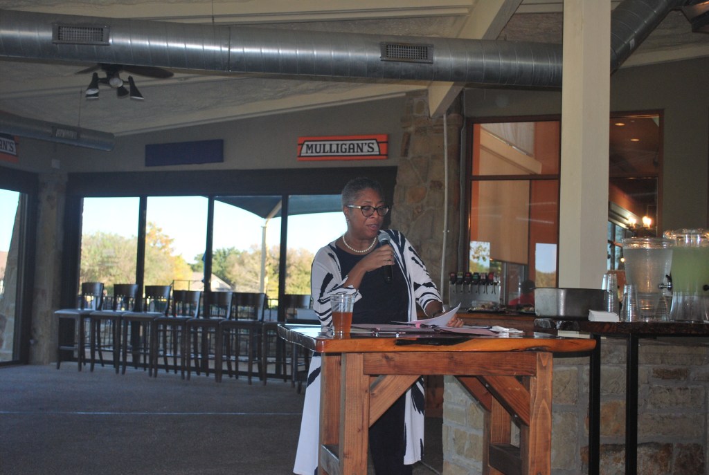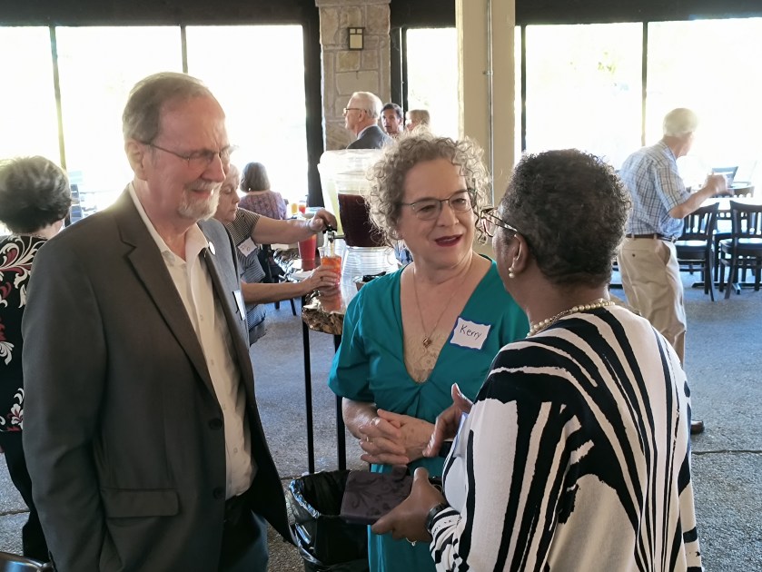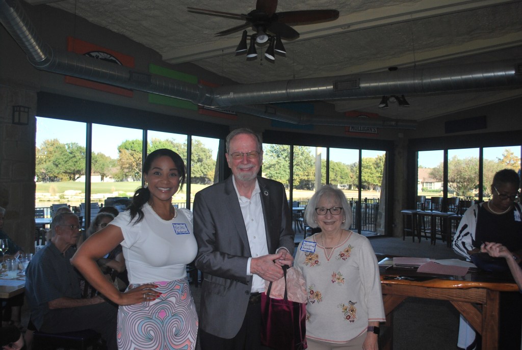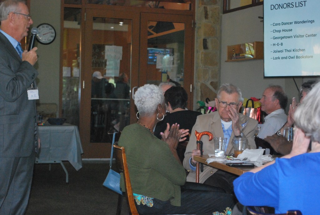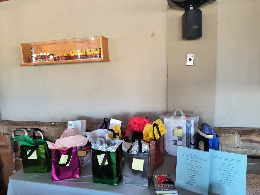 The 35th Anniversary Dinner for the San Gabriel Writers’ League took place on Sunday, October 20 on the Patio at Mulligan’s Restaurant in Sun City. This milestone event featured good food, fellowship and fun! All attendees received a 35th Anniversary commemorative pen. Fifteen Door Prizes valued at over $1,000 included gift cards and certificates from Georgetown businesses, books by SGWL Authors and a 2025 SGWL Family Membership. These items were distributed in three raffles throughout the evening.