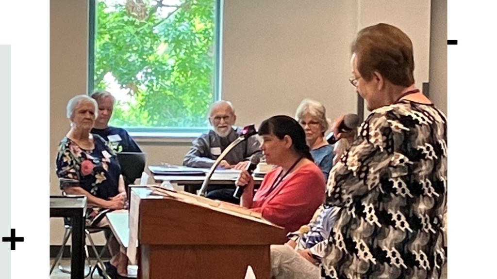 Almost a hundred people crowded the Friends Room of the Georgetown Public Library on May 27 to hear a panel discuss various segments of the writing profession. League members representing fiction (J.B. Penrose), non-fiction (Linda Thornton), and the editing and publishing fields (Teresa Lynn and Donnella Looger) took questions from the audience, then provided individual small group time for further discussion.