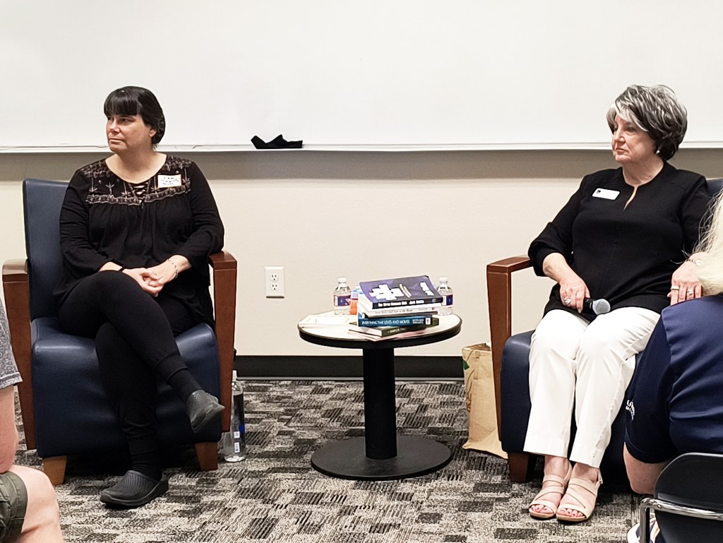 Almost a hundred people crowded the Friends Room of the Georgetown Public Library on May 27 to hear a panel discuss various segments of the writing profession. We even had to open the adjoining room for all who wanted to attend. League members representing fiction (J.B. Penrose), non-fiction (Linda Thornton), and the editing and publishing fields (Teresa Lynn and Donnella Looger) took questions from the audience, then provided individual small group time for further discussion. Seven attendees joined our League, bringing the membership total to 86. Thanks to all panelists, board members, and volunteers who made it an outstanding afternoon.